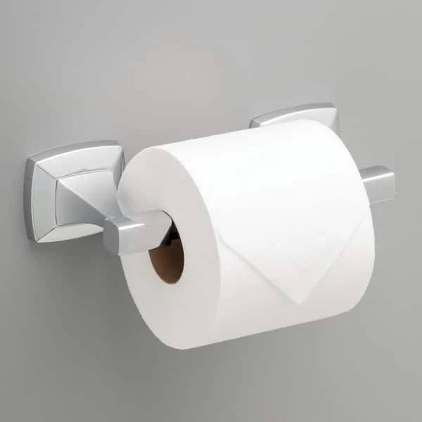 The Delta Portwood Bath Collection's blend of classic curves and softened angles creates a polished look in the bathroom. This pivoting arm toilet paper holder keeps your toilet paper roll secure for use while allowing easy change out. Complete your space with coordinating pieces from the full collection (sold separately). Color: Matte Black.